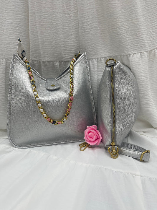 Ensemble de sacs argentés avec chaîne dorée - Élégance éclatante