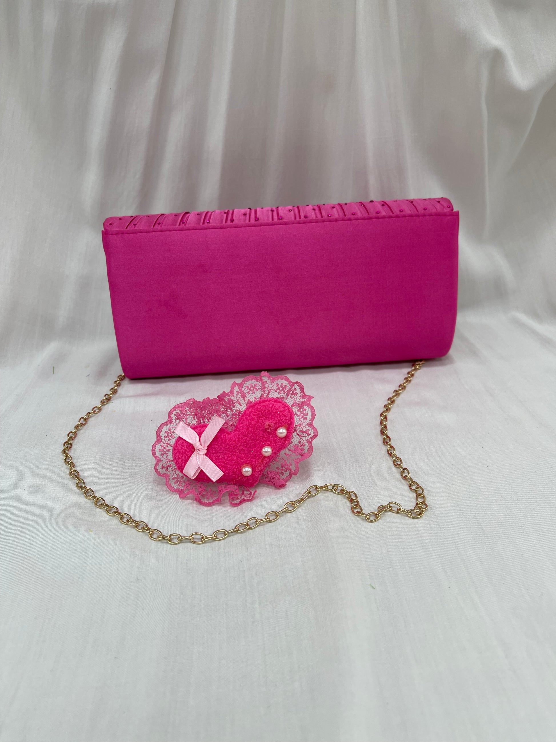 Pochette glamour fuchsia avec détails scintillants – Élégance assurée